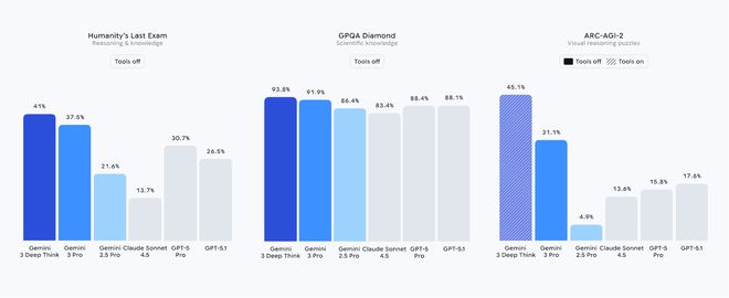 11月19日,谷歌宣布推出最强推理模型Gemini 3,一个模型囊括了原生多模态、推理、Agent多种能力。Gemini 3被广泛认为已经超越了GPT-5,并在模型训练过程中取得了OpenAI近几个月未能突破的技术进展。此外,谷歌还计划推出Gemini 3的深度思考(Deep Think)模式,该模式表现出了比Gemini 3更强的性能。