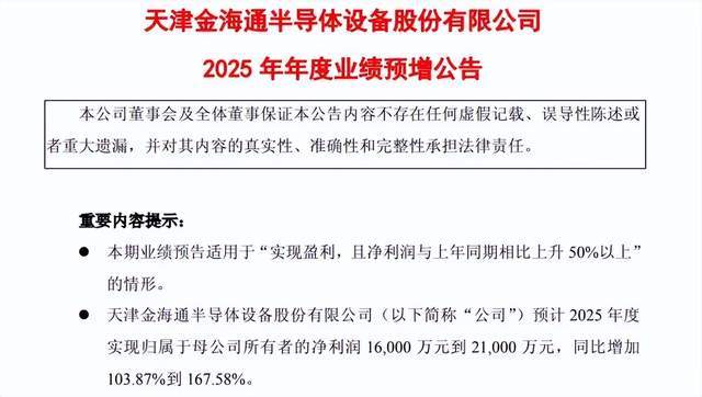 2026年1月14日晚,金海通披露2025年度业绩预告,预计全年实现归属于母公司所有者的净利润1.6亿元至2.1亿元,同比增长103.87%至167.58%;扣除非经常性损益后的净利润为1.55亿元至2.05亿元,同比增幅达128.83%至202.64%。