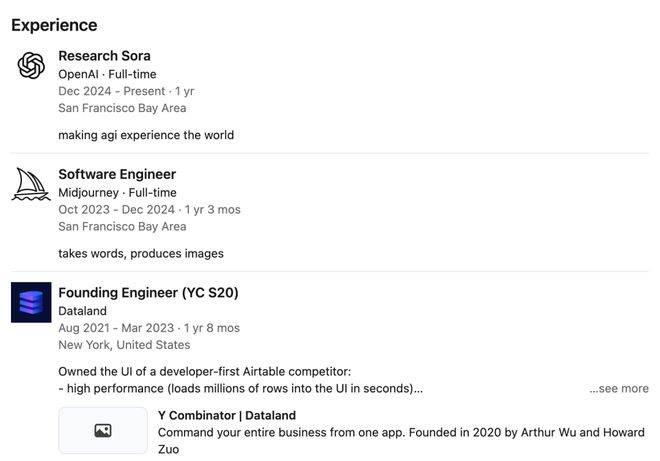 现在的他是OpenAI的研究科学家,Sora的核心技术贡献者,年仅23岁,竟然是个高中辍学生!